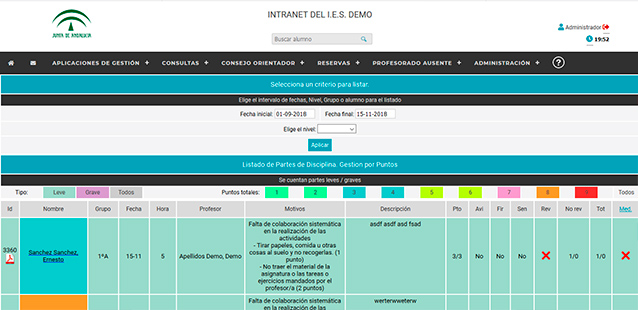 -Gestión de alumnos: fichas personales, observaciones, expulsiones, partes, horarios, carnet de alumnos, etc.